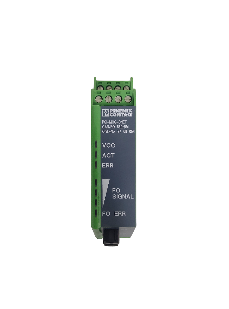 Conversor FO com diagnóstico óptico integrado, para DeviceNet™, CAN, CANopen® até 800 kbps, módulo básico, interfaces: 1 x CAN, 1 x alarme, 1 x FO (FSMA), 660 nm, para cabo de polímero/fibra de vidro PCF.