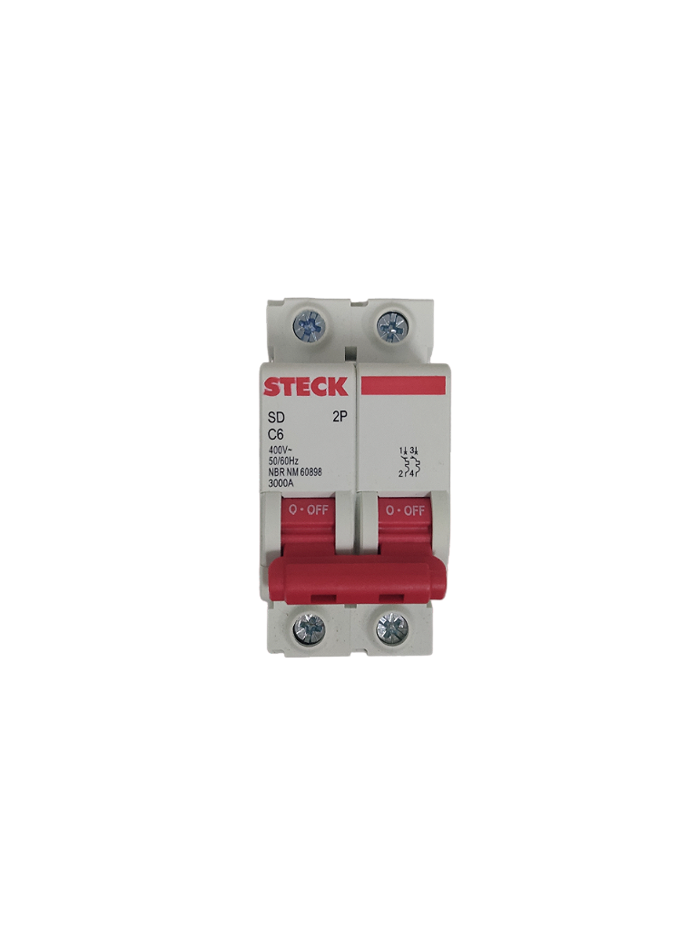 Conteúdo da Embalagem: Um Disjuntor Steck Bipolar 6A SD C6