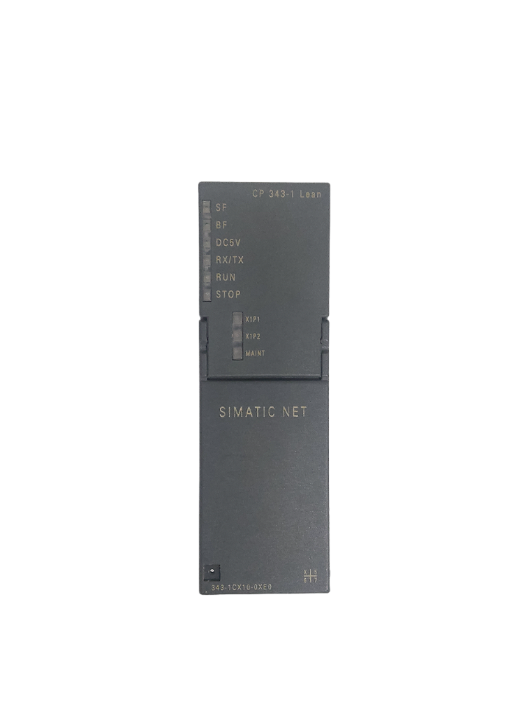 Processador de comunicações CP 343-1 Lean para conexão do SIMATIC S7-300 à Ethernet Industrial via TCP/IP e UDP, Multicast, SEND/RECEIVE com e sem RFC1006, Fetch/Write, comunicação S7 (servidor), dispositivo PROFINET IO integrado 2- switch de porta ERTEC 200, substituição de módulo sem PG, diagnóstico SNMP, inicialização via LAN, 2x conexão RJ45 para LAN com 10/100 Mbit/s